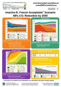 Presentation of a mitigation scenario for France developed within the project ENCI-LowCarb representing the outcome of a collaborative scenario design process. The modeling tool Imacim-R has been used for this exercise. The scenario is based on contributions of consulted French stakeholders. The implementation of all measures that were judged acceptable by the stakeholders leads to a 68% CO2 emissions reduction in 2050 compared to 1990. This report reveals the need for a strong political commitment to leverage the decarbonization of the energy system.